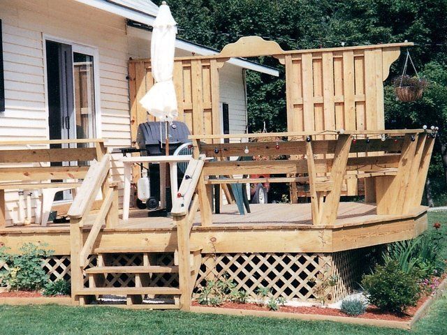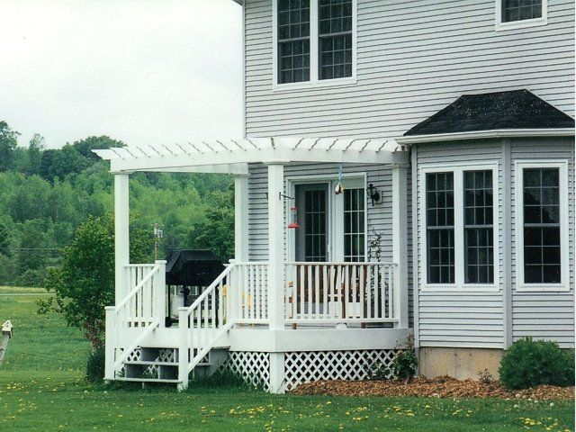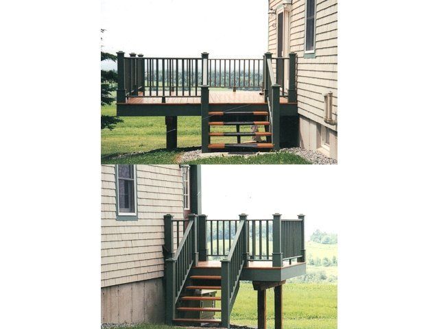 Removed old decking and railings. Installed new composite decking and vinyl railings with LED lighted post caps.